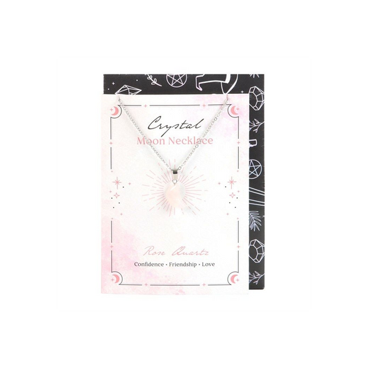 Rose Quartz Crystal Moon Necklace on Greeting Card