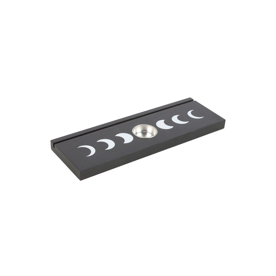 Display tarot card readings with this black wooden moon phases tarot card stand, complete with two spaces for holding tealight candles to create ambiance and allow the meaning of the cards to resonate. Whether it's used for displaying treasured tarot cards for their meaning or their unique design, this piece will add mystical allure to any home.