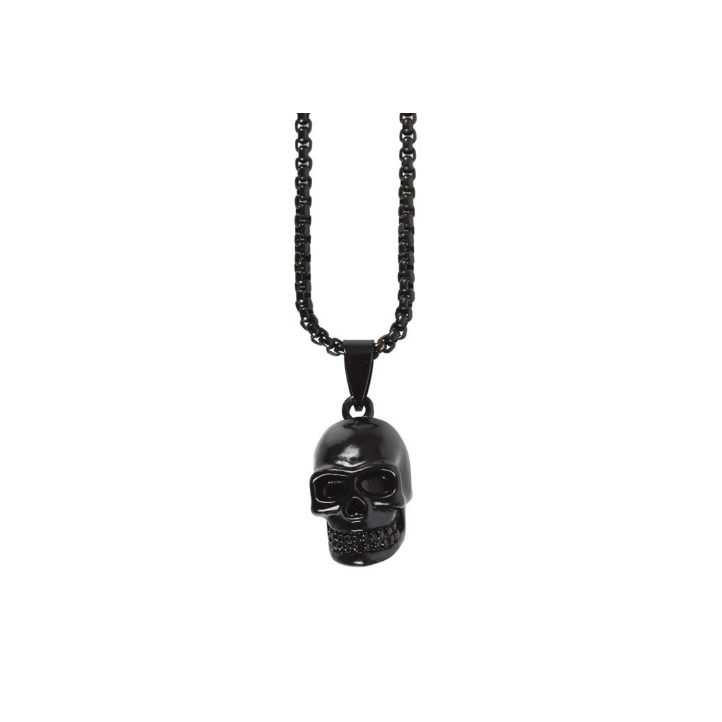 Blending gothic charm and modern style this black stainless steel skull pendant necklace is a striking accesory. Perfect for those who love to make a statement the necklace design combines the edgy appeal of the skulls with the sleekness of black stainless steel. Jewellery is nickel free.