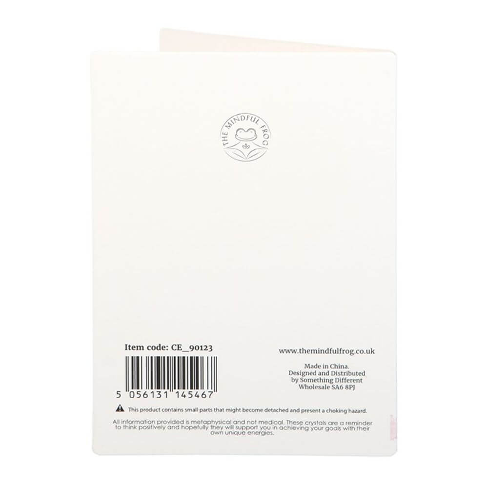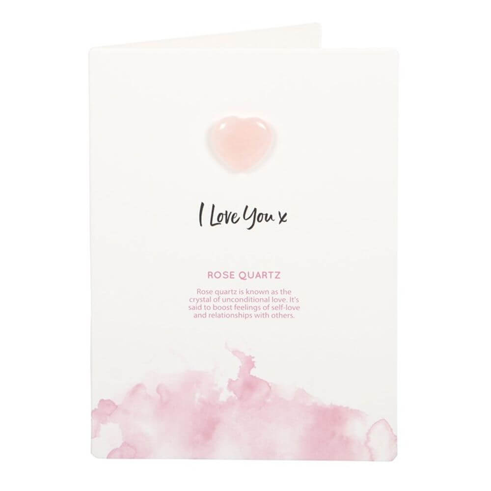 Give the gift of love and care with this meaningful crystal greeting card. Includes a small rose quartz crystal heart attached to a greeting card with 'I love you x’ text. Rose quartz is known as the crystal of unconditional love, powerful in boosting relationships. Card left blank inside. Envelope included.