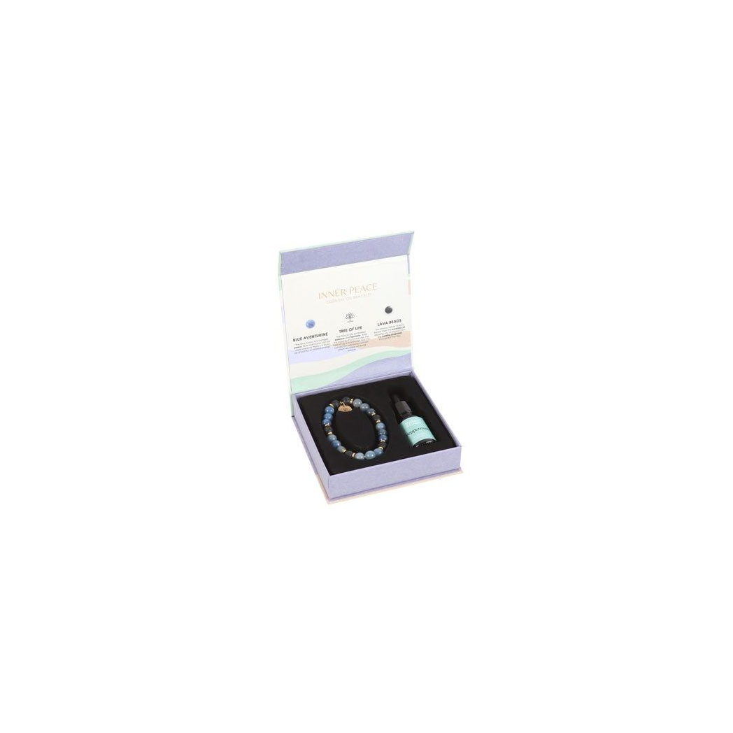 This inner peace lava bead bracelet and essential oil gift set uses aromatherapy to enhance the metaphysical healing power of crystals. Crafted with natural blue lace agate and lava beads, the bracelet serves as a diffuser for the included peppermint oil, promoting stress reduction and boosting energy. The addition of the tree of life charm symbolises growth and harmony, offers tranquility and serenity on the go. Crafted with durable materials and packaged in a luxury gift box, this elasticated bracelet combines beauty and functionality, offering a thoughtful present for various occasions.