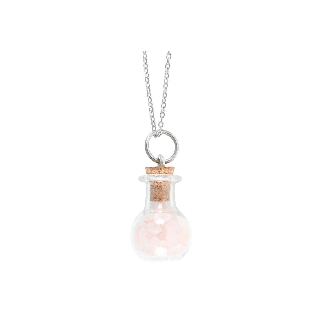 Love Rose Quartz Crystal Chip Potion Bottle Necklace