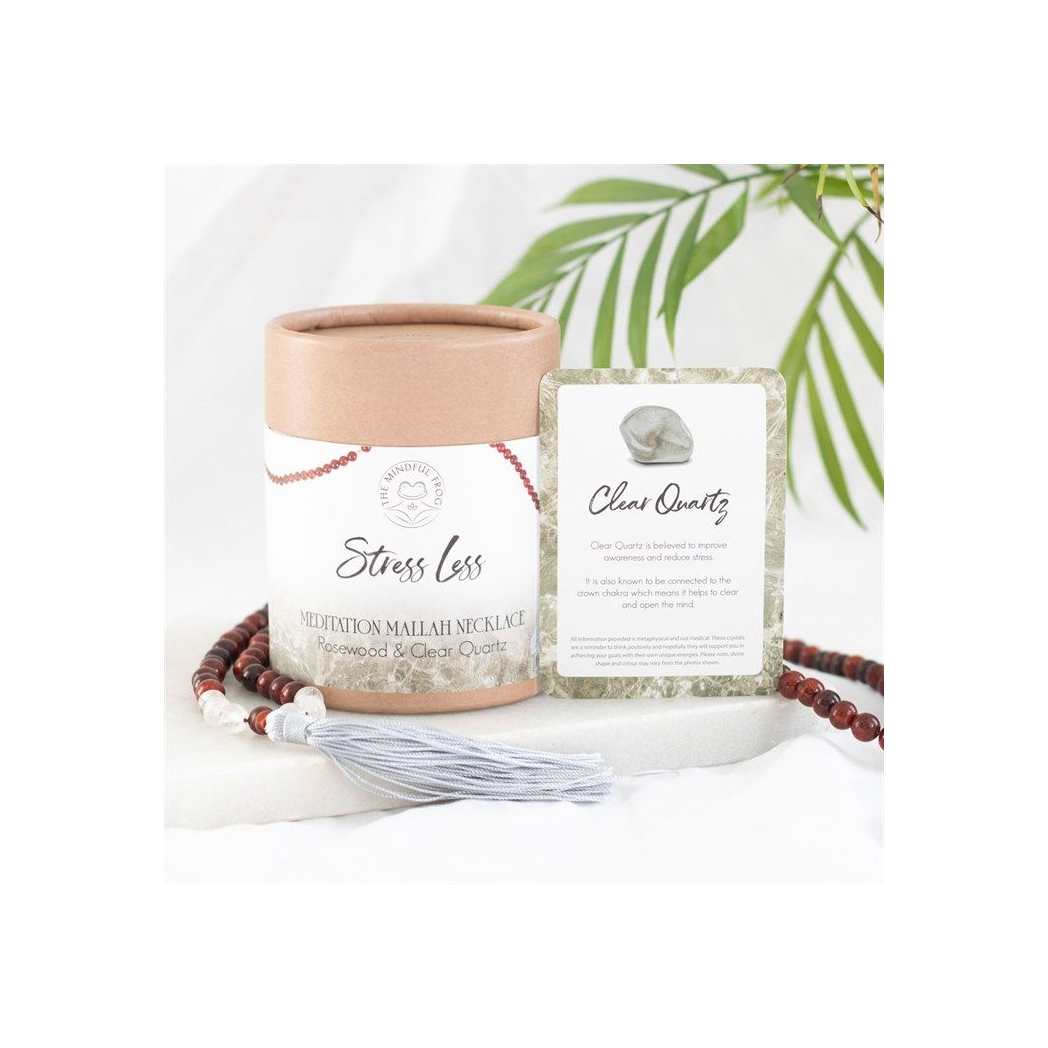 Stress Less Rosewood & Clear Quartz Mallah Necklace